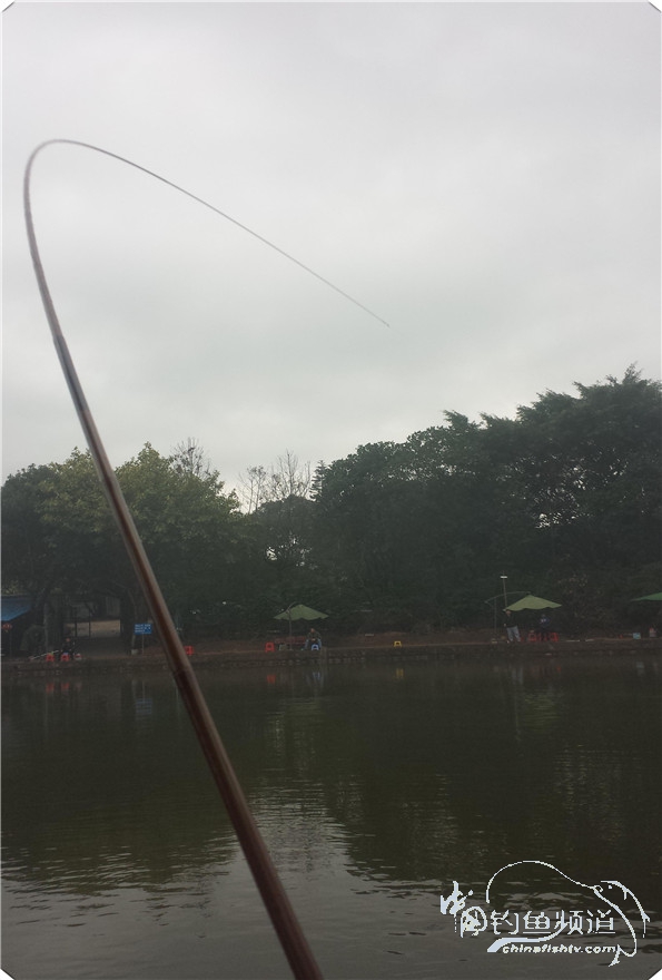 开竿不久就中鱼,貌似又是狂拉的节奏,看看竿子的弧度还是不错的吧