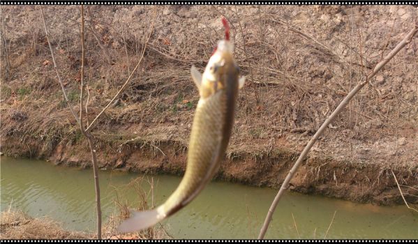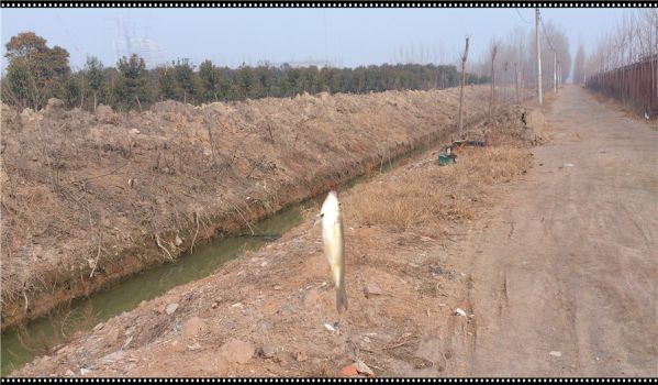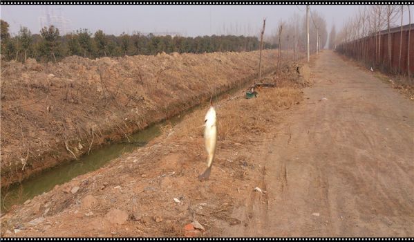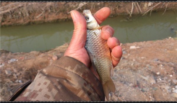 话说3月2日下午,俺在机坑(另一钓点)钓鱼,因无口战绩不佳,就电话联系好友小强,得知新发现刚挖的一条小沟鲫鱼密度不小,随即前往查看,俺到地方已是下午快5点了,竟然钓了一斤多鲫鱼,个头还行。