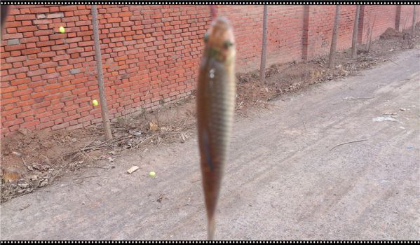 当天天气还不错,是个出鱼的天气,没什么技术可言,需要说明的是钓这么个小河沟为什么俺会用7.2米的竿子,因为沟边上是斜坡,再往上是一条土路,站在路上 来回走动方便,长竿直接伸到钓点就可飞鱼上岸,这也符合山水先生(让位于鱼)的理念。