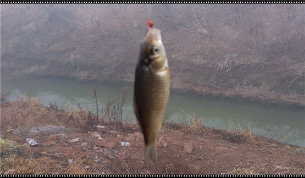来到地方,先手抛打下四个窝点,再拍两张雾霾下的钓点,抽完一支烟后就开始了一天的作钓。因上午没人来,不久又选了几个窝点,出鱼的窝点一小时续下酒米,量很小,每个窝不超过10克,绝对符合几十颗米一个窝的野钓法则。不说了,请看图片,手机拍摄,凑合能看。