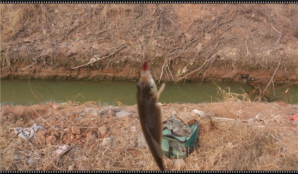 钓点离家并不太远,约十公里,去年清淤用挖机清理了一遍,是个过水的小沟,宽约一点五米,窄处仅一米,现在落水仅有七十公分水深。众多钓鱼人天天从此路过,竟然没人想到来这里钓鱼,因为实在是太不起眼了。