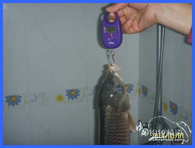 回家称过,鲤鱼1.08公斤,今年首条大鱼,今天用的新竿也算头一天就开光了。