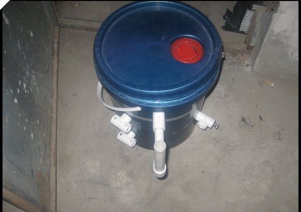 由 于制作的时候没有拍照,没有过程照片,只能口述了。先说一下原材料:油桶一只(装润滑油、涂料的都行,里面刷干净),四分的PPR三通4件、弯头2件、二 分的三通2件、四分的PPR管1米,(由于PVC的不是很结实,所以用的PPR的,要求不高也可用PVC的),木螺丝或者自攻螺丝20个、废塑料片少许, 还有主要的木棒一根,直径要和三通内径相配合,不合适就动刀吧!!