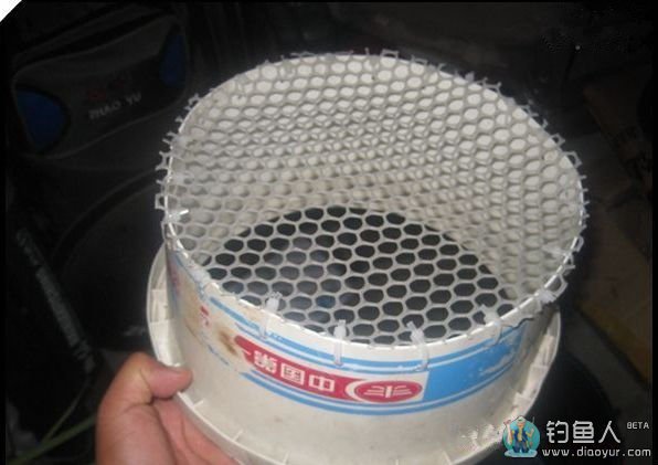它可以放在桶的里面,上面放一些钓鱼物品,下面放鱼,简单的说就是钓完鱼后方便把鱼和东西一起带回,而不弄脏,制作就是用一个小塑料桶(能放到钓桶里面的),用剪刀剪一半,顶面固定塑料网,扣上就行,如图: