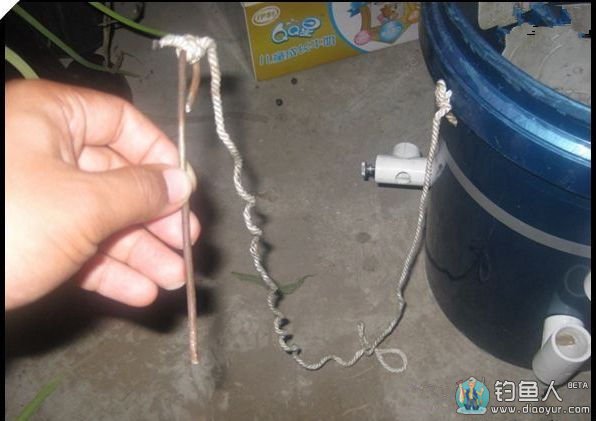 再回来和大家说说那两个绳,也许朋友早就猜到了,是防风绳,因为钓桶中心不稳,里面放上配重,再加上防风绳就万无一失了,用时拉直固定在地面。