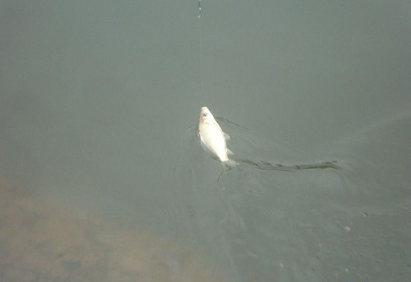 再想牵鱼,发现水面上的漂都不颤动了,线也不走了,遭了,可能挂在水下的桠枝上了。最后还是在一片哦豁声中,我失去了与MM见面的机会。鱼跑了,这次似乎没感到遗憾,有句话说的对,是你的永远是你的,不是你的无论如何也得不到。想见MM以后还有机会的。