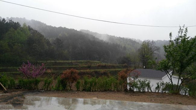 2015.4.3 郑州还是天气不错,两车5人在浓雾中,带着迫不及待的心情匆匆踏上高速,留给我们的却是焦急不安的等待。夜晚到来,也再一次验证天气预报的准确,雨如约而 来,但却没有了天街小雨润如酥般的矜持,不顾远行人的心情,激情四溢,带给我只有行车的艰难,一车四人在高速上努力穿越大雨的怀抱,天亮时分终于解放了疲 惫,如做梦般的到了此行目的地,商城县鲇鱼山水库边安静的小山村——七里冲。