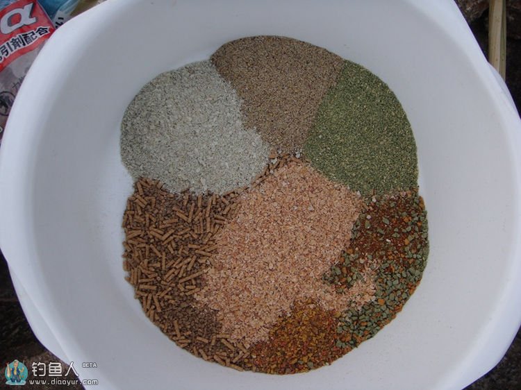 因为据说鲤鱼草鱼为主,没有多少鲫鱼,所以这次开了有开口料和田螺鲤、海藻一公斤、荒食的鲤鱼饵。
