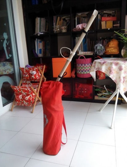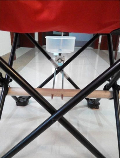 现在开始摆地摊了。货品就是一把折叠椅,三根绳子,一根25型号的PVC管子,一个钓鱼竿架。