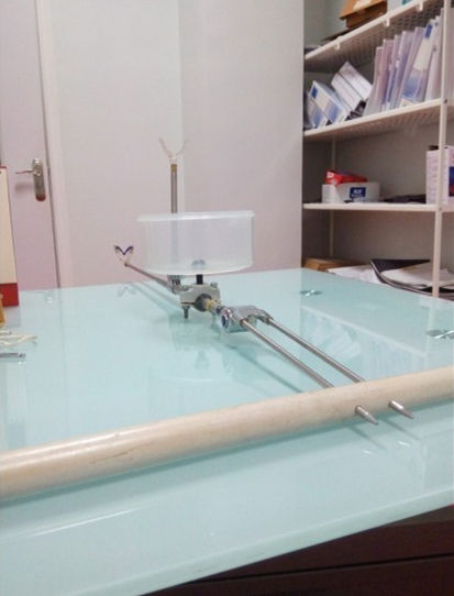 以上这个组合被我仿造了一个,但是在一次钓鱼时,被我“枪毙”了!不用了!这个组合有个最大的问题,就是竿架太容易左右晃动,底下只是一块木条(或其它材质的)挡住,不自觉的,竿架就偏离了航道(钓点),头疼不已!回家后,就开始东想西想试图灵机一动拿出解决方案。那个组合的“獠牙”是朝下的,我就依这个思路去构思,整半天都没整出个名堂!想的那些方法不大稳固,收折叠椅时还合不大拢。