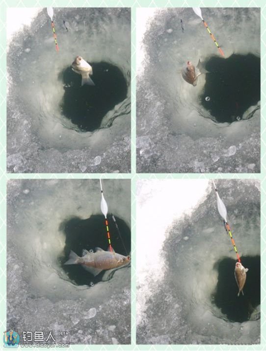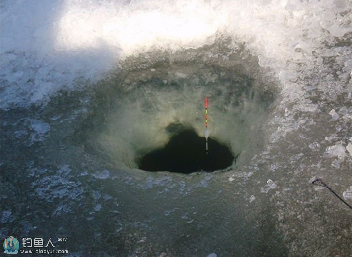 冬天钓鱼,找鱼最难。所以到达钓场时,要提前钻好多个冰眼,不应该等无鱼上钩在现开。
