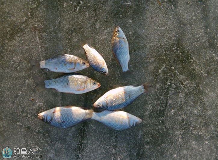 冬天水冷,鱼也懒。“逗钓”是不可避免要用到的,轻轻提起浮漂使鱼钩慢慢落下。如果没有鱼汛,重复几次。目的是把死饵模拟成活饵,更容易让鱼发现。这是大半天的鱼货,数量可观,个头却遗憾!