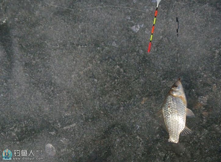 钓法:冰钓,单勾钓离底。