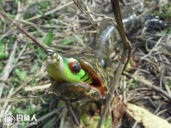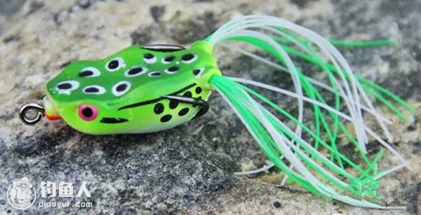 反应快的钓友已经猜出来答案了,没错!这些蛙形路亚最早是专钓黑鲈的,而且藉由自然观察得来的经验,彼时的黑鲈钓者已经懂得将蛙形路亚先投到岸上,然后慢慢拖下水中,模仿自然界青蛙从岸上跳入水中的样子,用此手法来诱引黑鲈上钩。