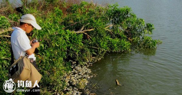 浅滩、近岸作钓这种无遮挡无屏障钓点就像草原上的猎手在狩猎,极易被猎物察觉,由于近岸、浅滩作钓的标点离岸很近,水的深度大都比较浅,根据水质清浊的能见度,人必须要和岸保持一定有效的距离,挥竿幅度也要稍作克制,避免人发现鱼之前被鱼发现人。作钓过程中经常可以发现黑鱼会缓速巡游觅食,多次观察追踪到黑鱼的巡游觅食线路往往是平行于水岸交界线,过于靠近岸边容易干扰了黑鱼的巡游觅食线路,一旦黑鱼发现异常响动,立刻游到深水区域不见踪影,保持距离也就是给巡游觅食的黑鱼让道。
