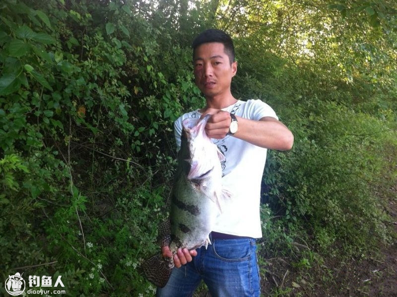 我先用卷尾蛆跳了十几杆,冰哥用米诺均无口,换亮片搜底也没有反应。晚上六点半左右,我换上旋转亮片沉底,纺车轮刚收两圈,一个顿口,很轻,我轻刺收线,越收越感觉很重,离岸五六米时鱼开始要线了,我站稳脚部,杆尖朝下,这时只看见水面波浪水花起伏,杆尖颤抖,过了几分钟继续开始收线,足有手掌大的鳜鱼尾巴浮出水面,此情此景让我肾上腺急剧加速,不由地喊:冰哥过来帮忙起鱼。