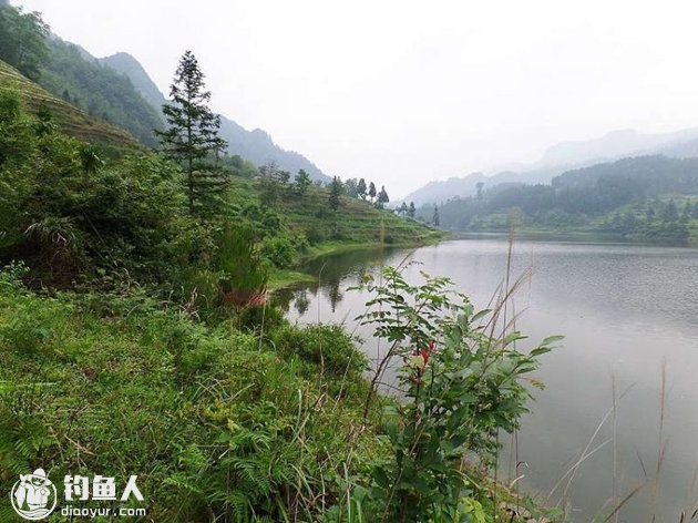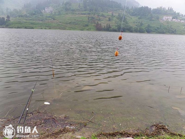 以往来这儿都是钓的库腰,由于涨了水的原因,库腰那一段的水太深了,用5.4米的打满杆是落不到底的,所以选择了钓库尾。由于该钓场地理位置较高,是坐在阴凉处就不热那种地方。加之又是属于喀斯特地貌,难长出茂密的草,虽然涨了水,淹了草也不太锚钩,因此选择钓库尾的决定是正确的,这个正确的决定,是用最后的成绩来证明了的。