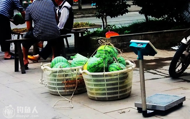 重庆三环高速通车了,又有很多水库被纳入了我们的视线,对于垂钓人来说以前的路线不好走已不成问题了,多了很多垂钓钓场的选择余地。一个小时车程下高速就到了,看看时间还挺早的,先来在小镇上吃个早餐,路边的西瓜看起来真不错,买三个当水喝。