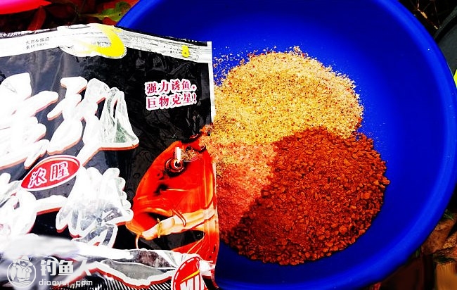 选好位置打好窝,接下来就是开饵,钓黄尾鱼的饵料老鬼有一款饵料叫库钓黄尾,比较偏腥香。