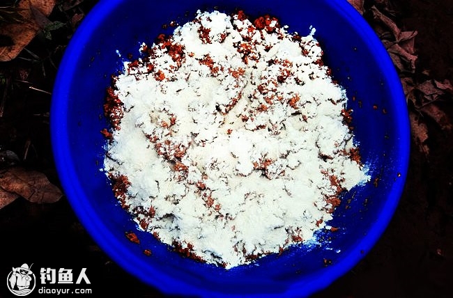 黄尾鲴鱼属于鯝鱼类,嘴巴很小,上颌突出有角质层,以刮食的方式吃饵。如果是用搓饵钓的话估计效果不是很好,准备拉饵钓。先把几种饵料拌匀,加一比一点五的水慢慢泡软。