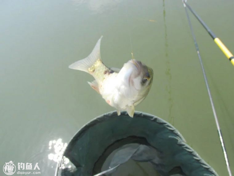 上来这尾小鲫鱼后就光看浮漂有动作不上鱼窝子里鱼星不断看鱼星都是鲫鱼的鱼星没鲤鱼的于是马上换2号无刺鱼钩子线换成0.8的
