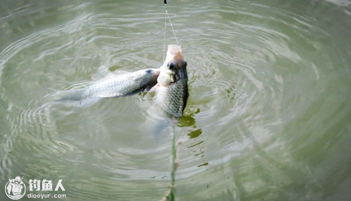 手竿野河沟渠抛竿垂纶 野鲫破水而出一竿两尾