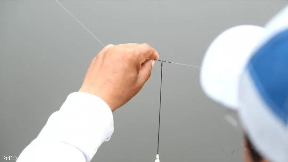 第二步:固定浮标座最上方的太空豆,记住这个位置是铅坠到底的位置,可以做为浮标调整的最钝点。保留最上方太空豆后,向下拉浮标,下拉浮标的长度以超过子线的长度为宜,不要拉的太多,否则多拉的大线浮力也会影响浮标的精确调整,记住这个浮标座下最下方太空豆的位置,这个位置是双钩带饵离底的位置,如果你是底钓法,最灵的调整位置也就是这。