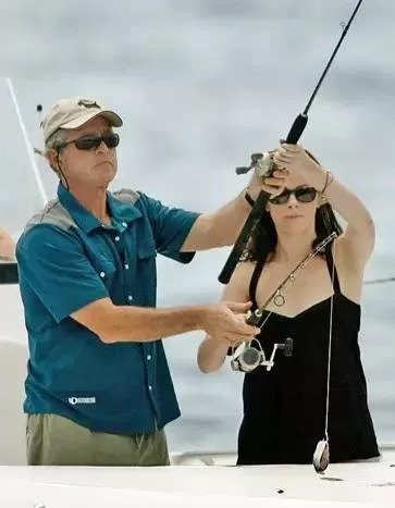 小布什还手把手的教他的爱女芭芭拉,这可是一位潜在的女路亚高手啊!