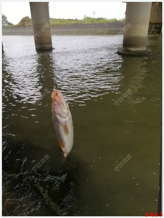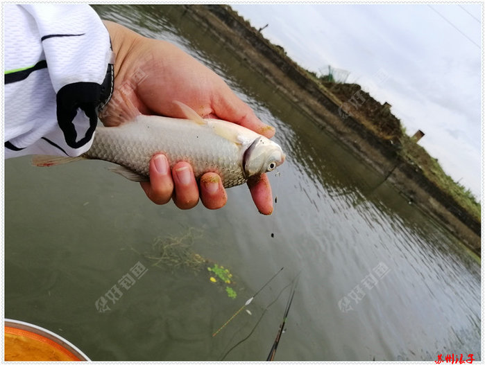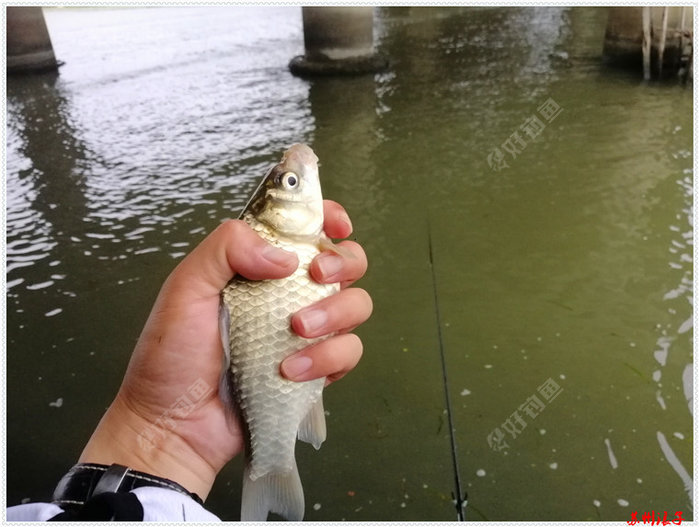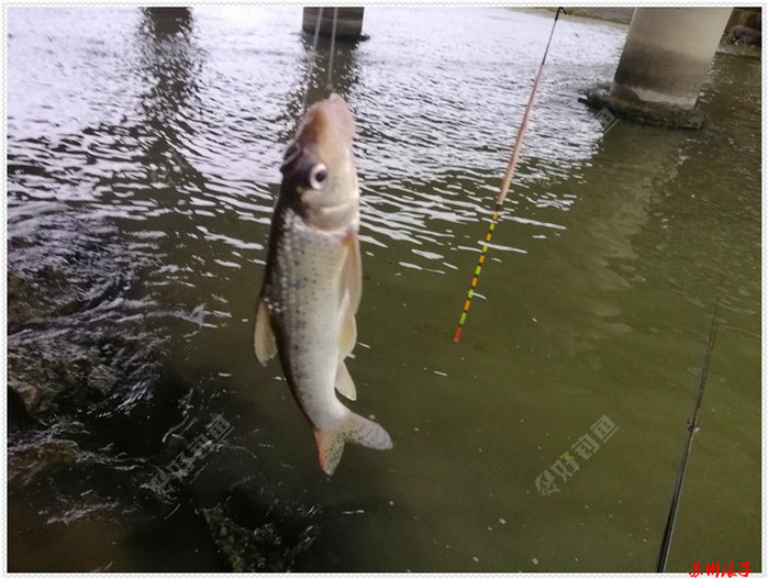 今天是个有雨的日子,所以我计划就是去钓钓昂刺鱼,也就是黄颖鱼。带了三四盒红蚯蚓出门的。因为下雨所以一开始我选择了桥下面,这里可以避雨,而且也适合昂刺鱼的藏身。找出一副陈年的线组挂上蚯蚓开钓,然后准备继续支短杆抽饵料,这样做窝的同时可以钓钓其它鱼种,只是我还没准备好,就发现浮漂不见了,赶紧去提杆刺鱼,第一尾小板鲫就这么出水了,我还以为是昂刺呢,结果竟然是小板鲫,真是不容易呀,看来今天有戏呀,鱼口不错。