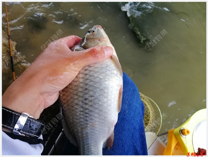 桥下面的精彩到这条斤鲫算是结束了,后面小鱼比较凶,正好雨停了,我就搬回老钓位了。继续用五米四挂大蚯蚓守昂刺,三米六的小短杆边上抽着玩。搬回来后这条蚯蚓最精彩的时刻慢慢到来了,一开始两三个黑漂都没打到鱼,估计是小鱼闹腾的,不过小短杆倒是上了两个鲫鱼,还算不错,饵料也是开光了,但是今天饵料注定只能是配角。因为就在十点左右的时候,这条神奇的蚯蚓上面的浮漂黑了下去,提杆刺鱼,力道很重,我以为中大鲤鱼了,还跟边上的钓友说,这次来了个大鲤鱼,谁知道这条鲤鱼一动不动的跟着慢慢出水了,拉到水面一看不得了,一直一斤半左右的大甲鱼呀,终于让我钓到纯野生的大甲鱼了,小心翼翼抄鱼入网,这个神奇的蚯蚓发挥到了极致,这只甲鱼凶猛异常,根本不敢养着,直接赶紧送回家。