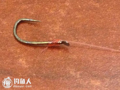 2.缠绕钩柄的圈数不是越多越好。一方面,钩柄上一个线疙瘩,很容易挂满残留物;另一方面,缠绕多了会使子线和钩子挺得很直,不利于轻口吸入。