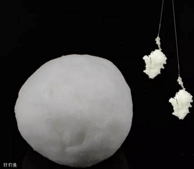 饵团呈棉絮状,给鱼的吸食创造了良好的状态。附钩性强,中鱼快而中钩率极强,是竞技钓中的必备佳品。对竞技比赛中的猾口鱼、小口鱼,搓此白饵有高的中鱼率。